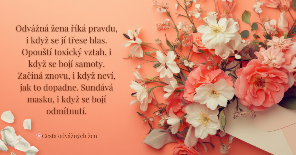 Odvaha není o tom, že se nebojíš. Odvaha je jít navzdory strachu. Petra měla strach. Každá z nás ho má. Ale ona šla. Krok za krokem, den za dnem. A dneska? Dnes je svobodná, spokojená a autentická.